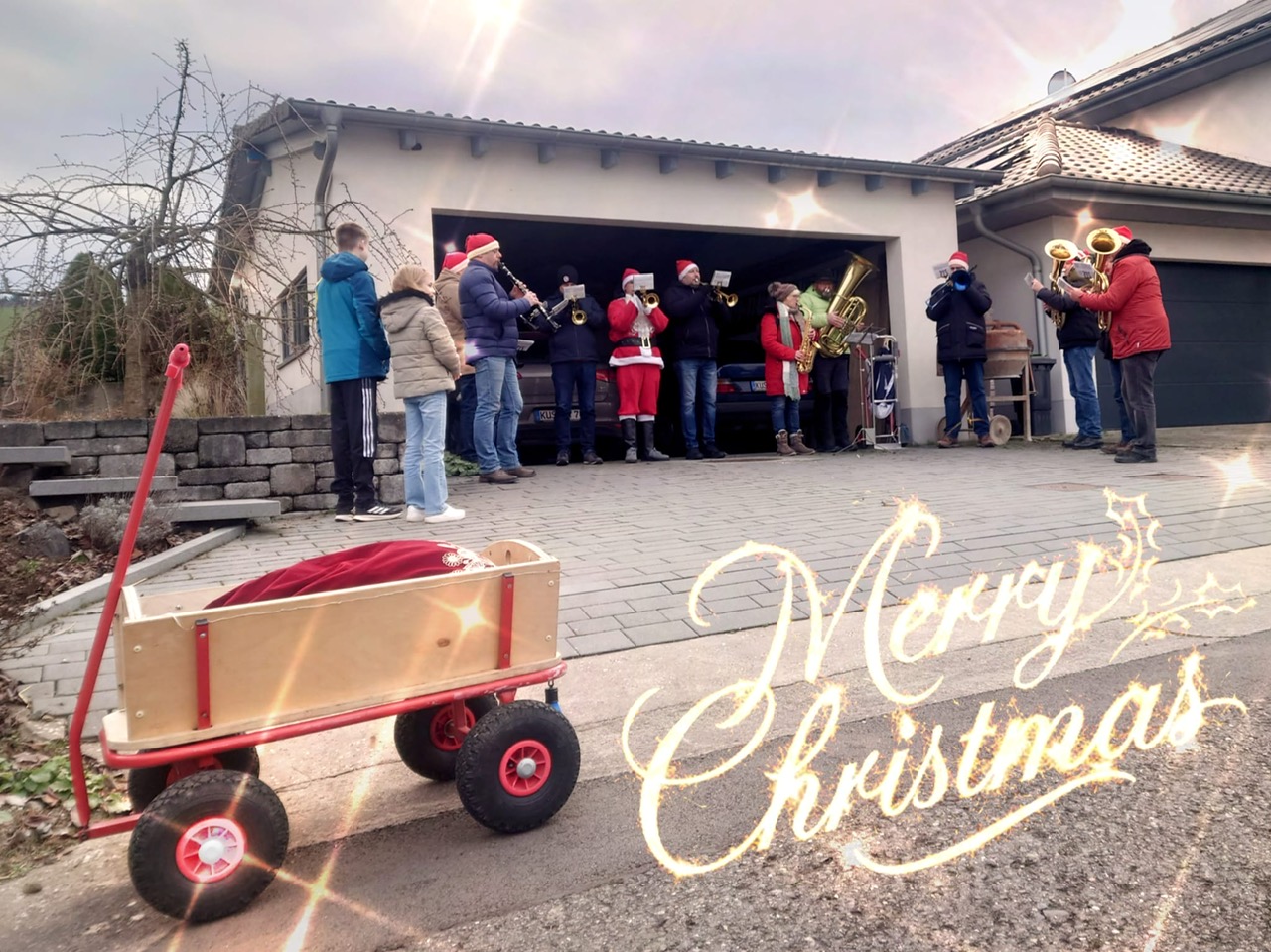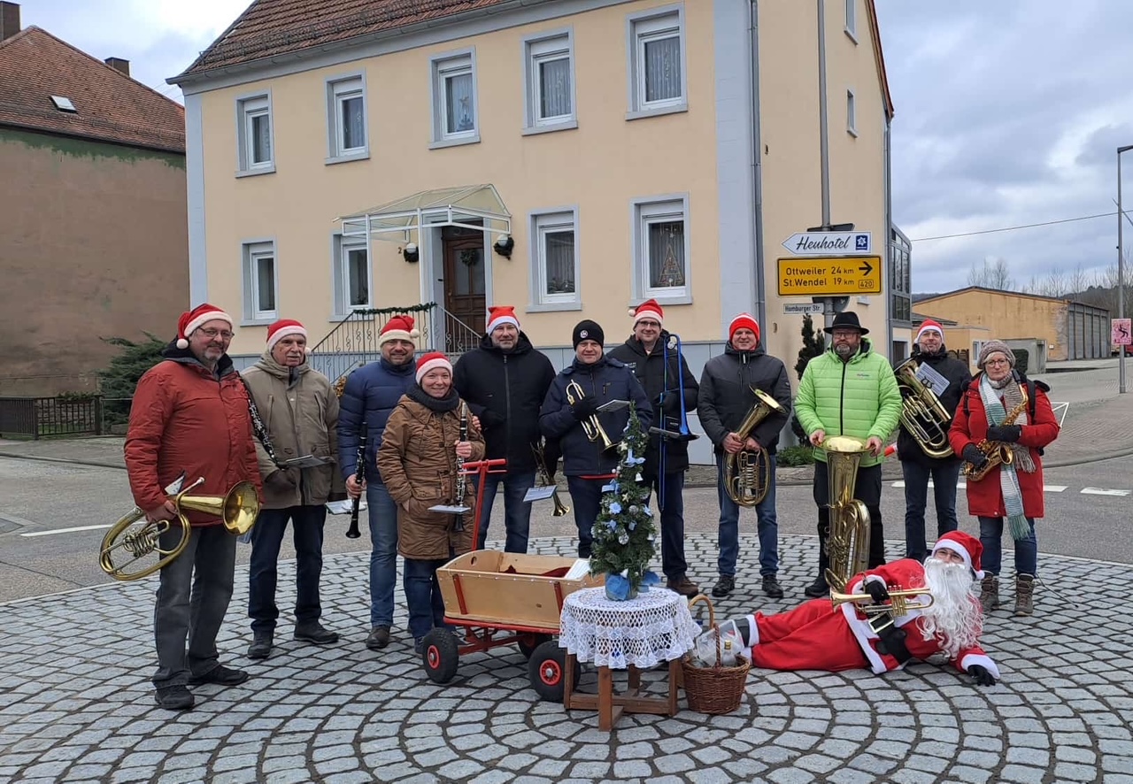 Am Heiligabend war es wieder so weit: Die Weihnachtsmusikanten aus Konken trafen sich in der Homburger Straße und machten sich gegen 10:30 Uhr auf den Weg durchs gelobte Land, um den Heiligabend einzuläuten und mit festlichen Klängen zu erfüllen. Trotz des eisigen Windes ließen sich die Musikerinnen und Musiker nicht unterkriegen. Mit warmen Mänteln, Schal und einer gehörigen Portion guter Laune liefen sie durch die Konker Straßen, begleitet vom Duft von Plätzchen und der Vorfreude der Einwohner.