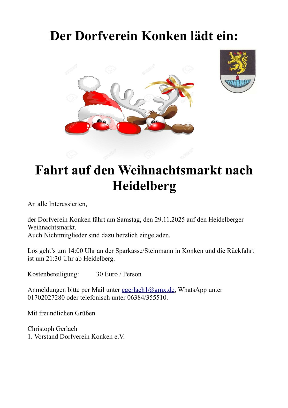 « Alle VeranstaltungenFahrt auf den Weihnachtsmarkt Heidelberg29. November , 14:00 - 23:00« St. Martinsfeier an der GrundschuleJahresabschluss VDK-Ortsverein (Interne Veranstaltung) »Fahrt auf den Weihnachtsmarkt Heidelberg Zum Kalender hinzufügen Google Kalender iCalendar Outlook 365 Outlook Live Details Datum: 29. November Zeit: 14:00 - 23:00 Veranstaltungsort Sparkasse / Steinmann Hauptstraße 25 Konken, Rheinland-Pfalz 66871 Germany Google Karte anzeigen